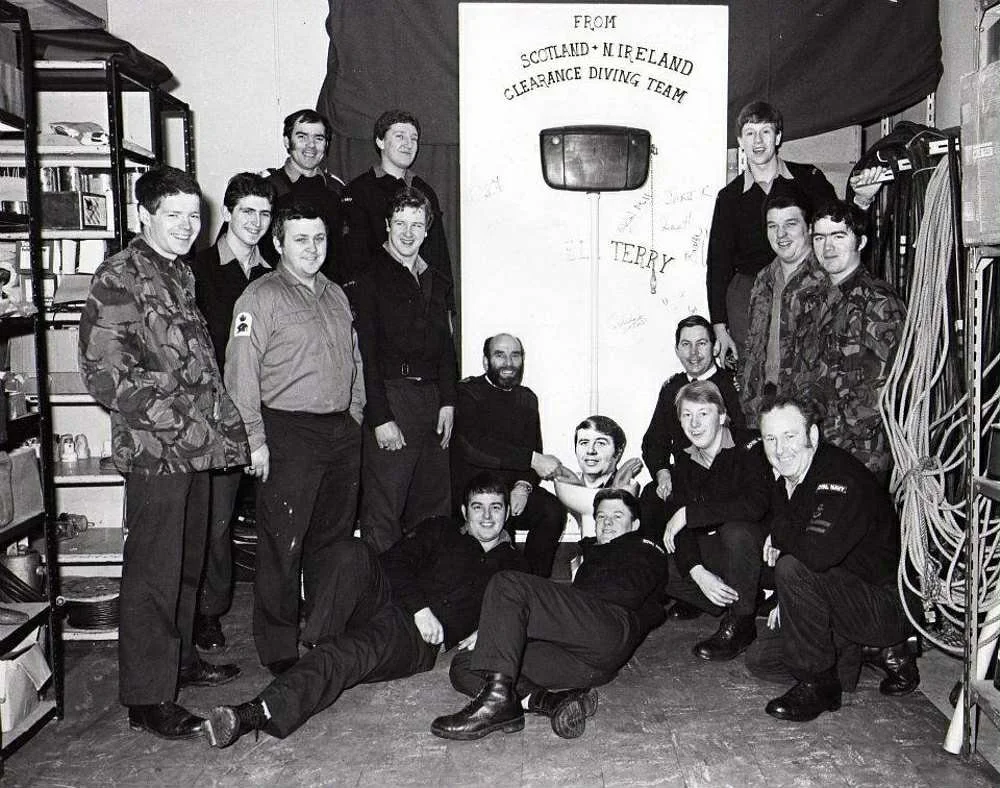 Alan Bayliss (squatting centre) with fellow members of the Scotland & Northern Ireland Clearance Diving Team circa1980