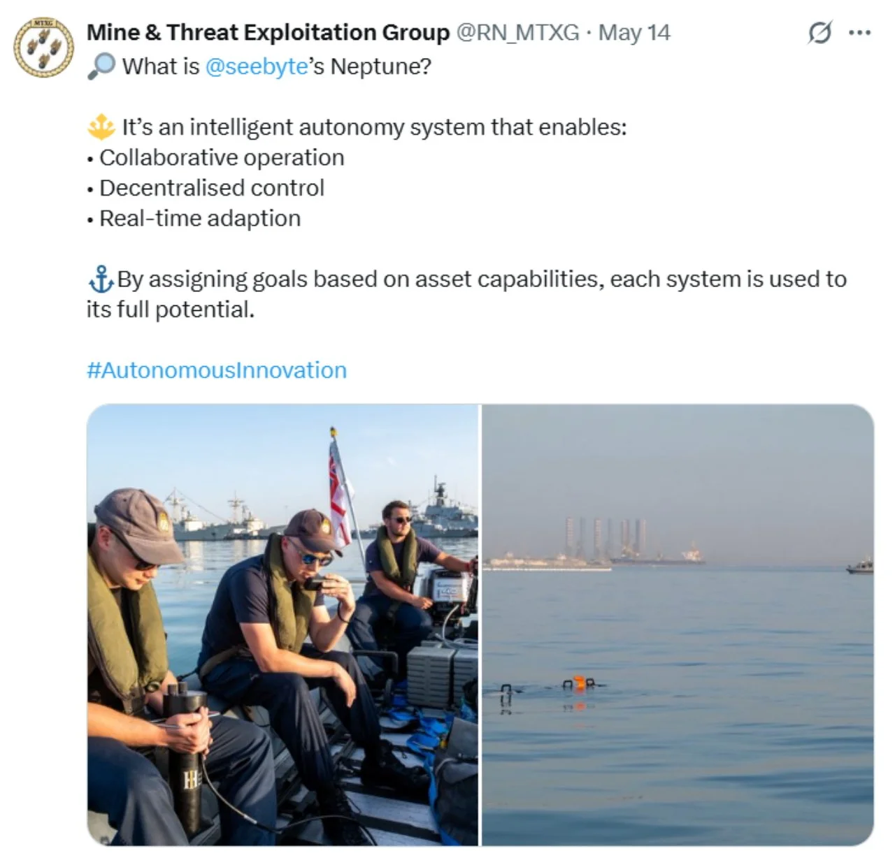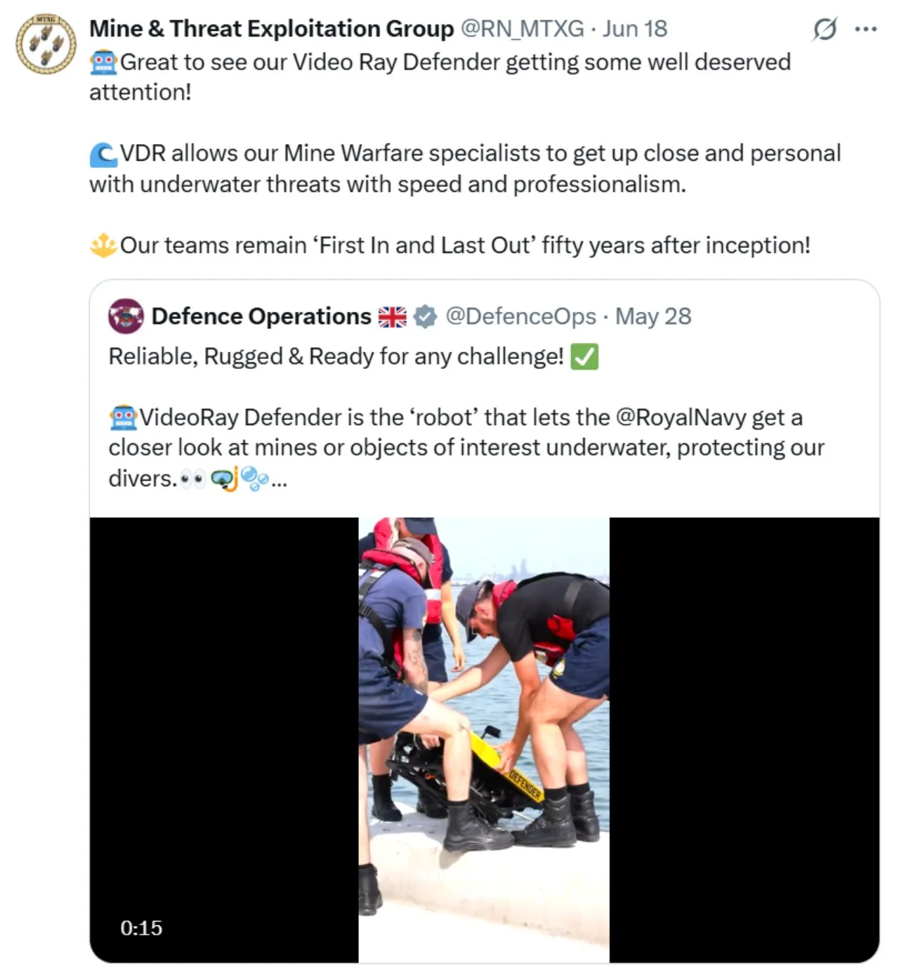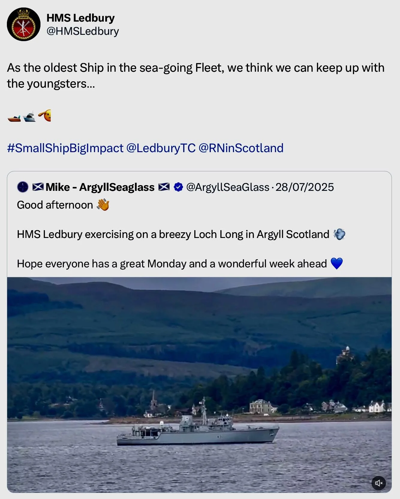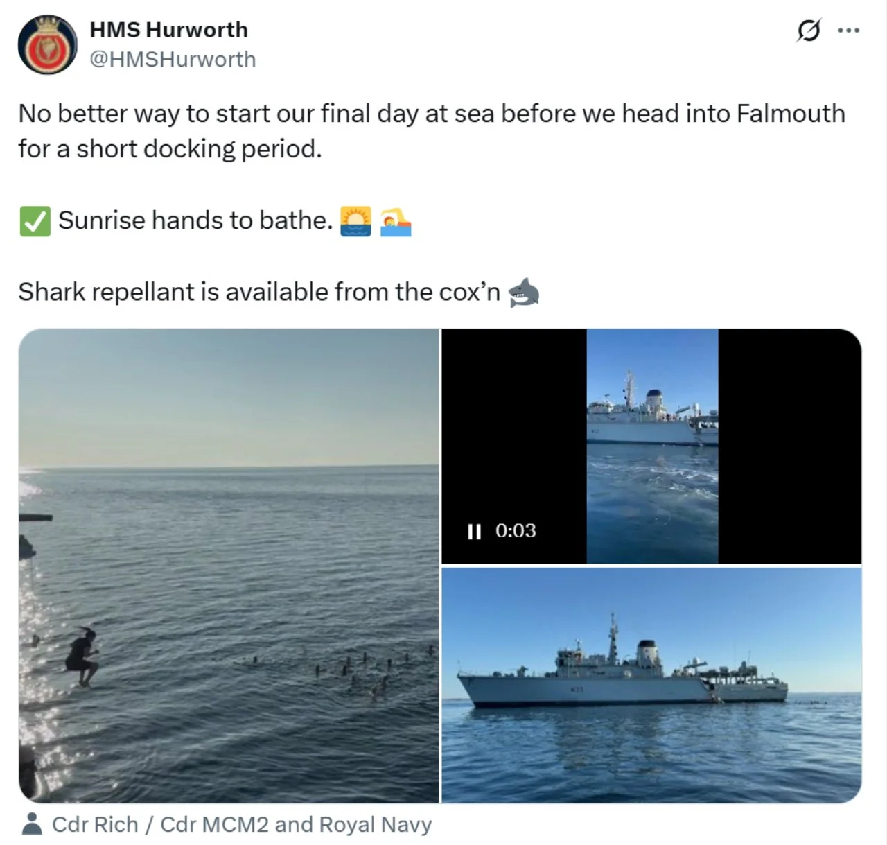 Recent ‘X’s (formerly Tweets) of interest 11 Aug Written By Rob Hoole 11 Aug 2025 - Click on the linked dates to see original ‘X’s containing videos and full-size photosFirst Sea Lord & Chief of Naval Staff5 Aug 2025 HMS CATTISTOCK (MCM2 Crew 5)12 Jul 2025 3 Jul 2025 3 Jul 2025 29 Jun 2025 19 Jun 2025 19 Jun 2025 10 Jun 2025 28 Apr 2025 27 Apr 2025 26 Apr 2025 23 Apr 2025 23 Apr 2025 HMS HURWORTH (MCM2 Crew 4)7 Aug 2025 30 Jul 2025 16 Jul 2025 11 Jul 2025 3 Jul 2025 24 Jun 2025 19 Jun 2025 19 Jun 2025 19 Jun 2025 2 Jun 2025 30 May 2025 29 May 2025 26 May 2025 23 May 2025 23 Apr 2025 23 Apr 2025 22 Apr 2025 22 Apr 2025 HMS LEDBURY (MCM2 Crew 1)7 Aug 2025 6 Aug 2025 HMS MIDDLETON (MCM2 Crew 7)6 Aug 2025 4 Aug 2025 2 Aug 2025 31 Jul 2025 30 Jul 2025 29 Jul 2025 28 Jul 2025 25 Jul 2025 24 Jul 2025 23 Jul 2025 22 Jul 2025 21 Jul 2025 16 Jul 2025 16 Jul 2025 15 Jul 2025 14 Jul 2025 13 Jul 2025 10 Jul 2025 9 Jul 2025 8 Jul 2025 9 Jun 2025 8 Jun 2025 5 Jun 2025 4 Jun 2025 28 May 2025 26 May 2025 23 May 2025 14 May 2025 MTXG (Mine & Threat Exploitation Group)7 Aug 2025 30 Jul 2025 18 Jun 2025 11 Jun 2025 14 May 2025 13 May 2025 29 Apr 2025 Navy Lookout7 Aug 2025 5 Aug 2025 17 Jul 2025 17 Jul 2025 16 Jul 2025 15 Jul 2025 12 Jul 2025 11 Jul 2025 8 Jul 2025 4 Jul 2025 3 Jul 2025 23 Jun 2025 20 Jun 2025 14 Jun 2025 12 Jun 2025 12 Jun 2025 2 Jun 2025 31 May 2025 30 May 2025 30 May 2025 26 May 2025 23 May 2025 14 May 2025 13 May 2025 10 May 2025 6 May 2025 29 Apr 2025 Rob Hoole